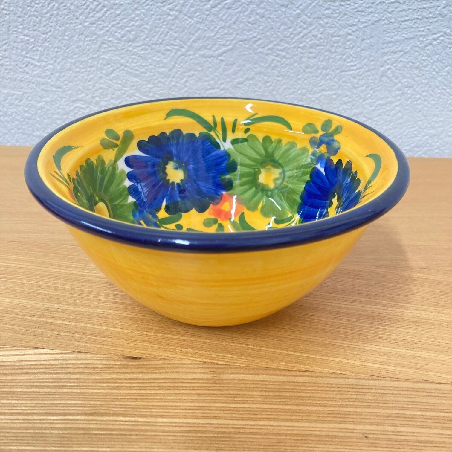 このボウルは、スペインの職人によるハンドメイドで、カラフルなデザインが施されています。目を引く鮮やかな色合いと、手描きの独特な模様が、食卓を一層華やかに演出します。