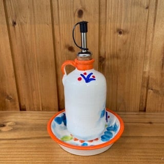 手作りのスペイン陶器で作られたオリーブオイル差し。美しい陶器の質感と鮮やかな色味は、食卓を一層豪華にしてくれます。
